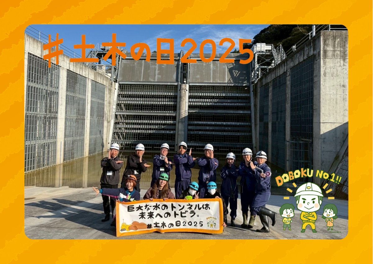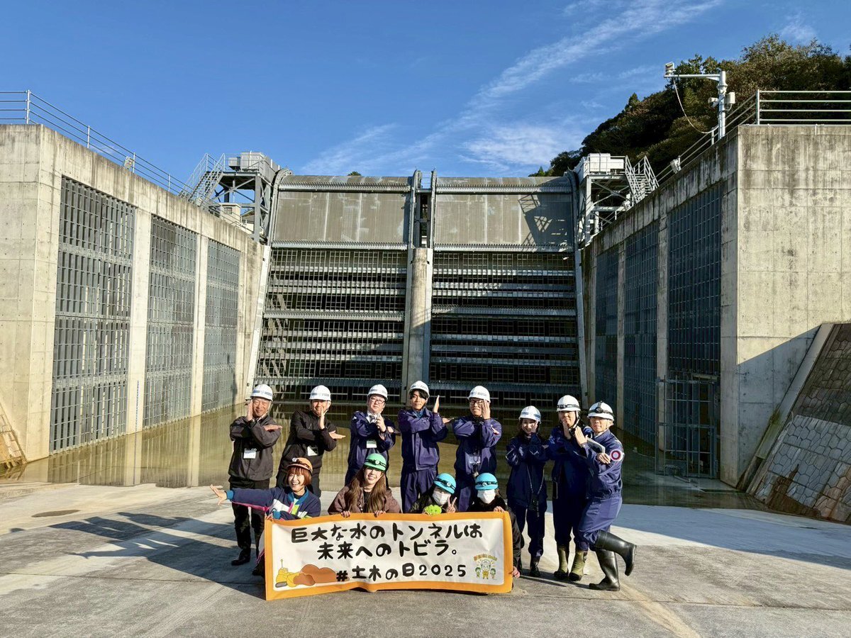 #土木の日2025 四国地整の広報パートナー勢揃いで高知県の日高村にある新日下川放水路の現場へGo✌️ "巨大な水のトンネルは未来へのトビラ" その正体を目の当たりに🤩 神秘的で迫力あるトンネル内での体験に加え!高知河川国道事務所の皆さんや園児の皆さんとダンスも撮影🕺💕 動画公開お楽しみに✌️ pic.x.com/wHfU05Hw8Y