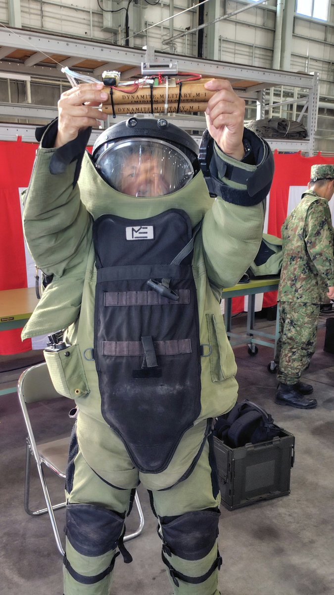 終わらせない!←自作自演 ちなみにさっきのC4を爆発させたらこれ着てれば助かります? って質問に 「あ、無理です😇」 「まぁ、(20mくらい離れた)あの扉の外ならワンチャン🫠」 #土浦駐屯地記念行事 pic.x.com/T9ohnGi354
