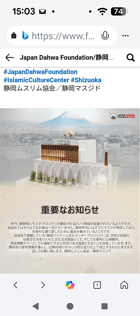 【御報告】市役所より ・東静岡にモスク建設予定があるとの情報を現時点で把握していない ・市の審査は建築基準法上の違反がないか ・建築確認申請が審査され確認済証が交付された後であれば、建築計画概要書として市の窓口で閲覧可能 との事で 静岡ムスリム協会も計画が無い旨を明言していました。 x.com/oyamochi/statu…