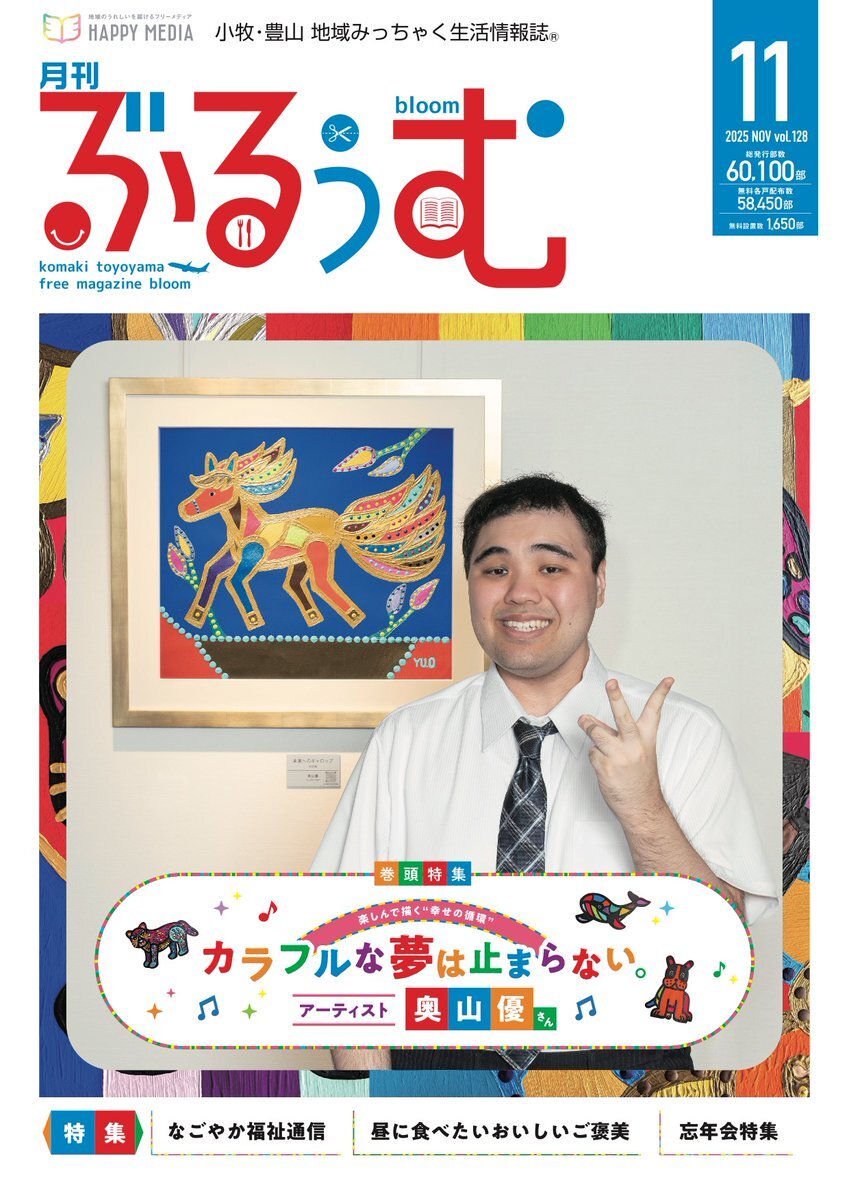 #月刊ぶるぅむ 11月号 巻頭特集はカラフルな画が素敵なアーティスト 障がいを持ちながらも親子二人三脚で活躍する #奥山優 さん #ご褒美ランチ#忘年会特集 も始まりました haruru.co.jp instagram.com/bloom_komaki.t… #小牧市 #豊山町 #地域みっちゃく生活情報誌 #こころとどむ pic.x.com/vM3yT5K3AN