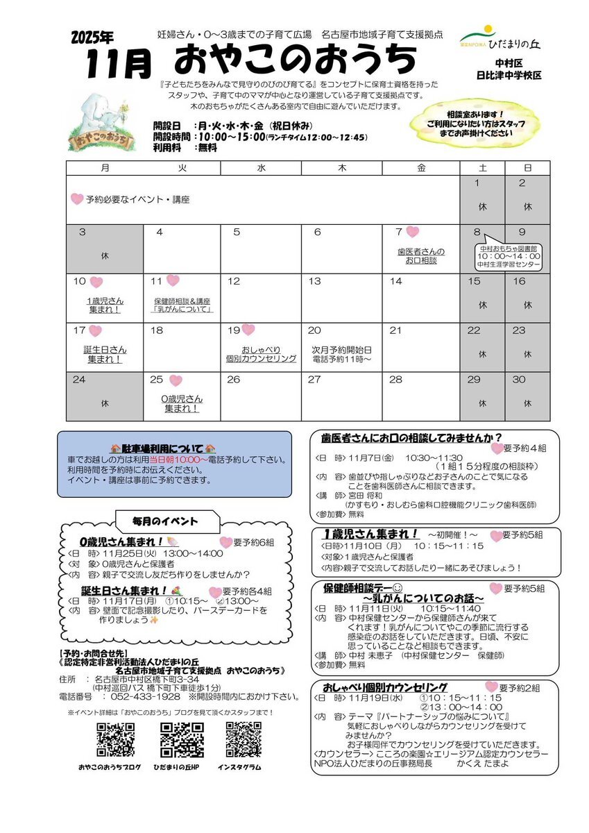 🐣シリーズ #地域子育て支援拠点 その5🐣 📍中村区地域子育て支援拠点(おやこのおうち) 地下鉄東山線「本陣駅」から徒歩20分🚶 駐車場2台🅿️ 「子どもたちをみんなで見守りのびのびと育てる」をコンセプトに活動しています。 気軽に遊びに来てくださいね🏠 Instagram🔽 instagram.com/oyakonoouchi pic.x.com/0pxhvoVoa5