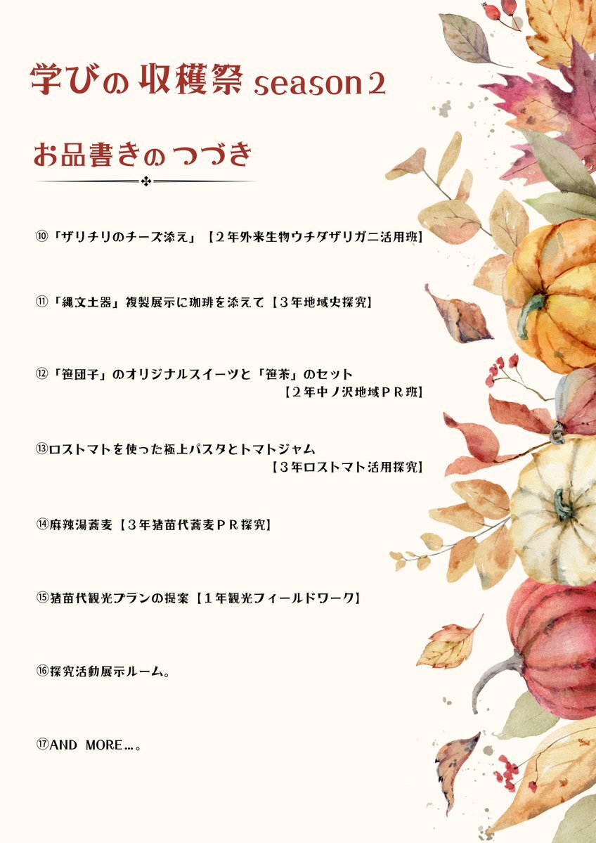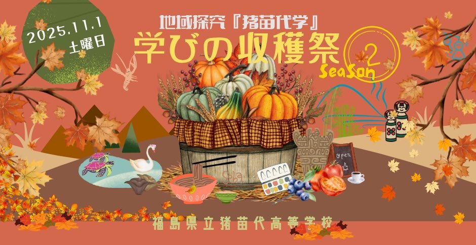 【11月1日】学びの収穫祭season2 いよいよ明日開催です🎃 開場時間 9:30〜15:30 駐車場ございます #地域探究 #地域みらい留学 #すぐそこにある猪苗代 pic.x.com/jfgnHI4VoU x.com/inako_tan9/sta…