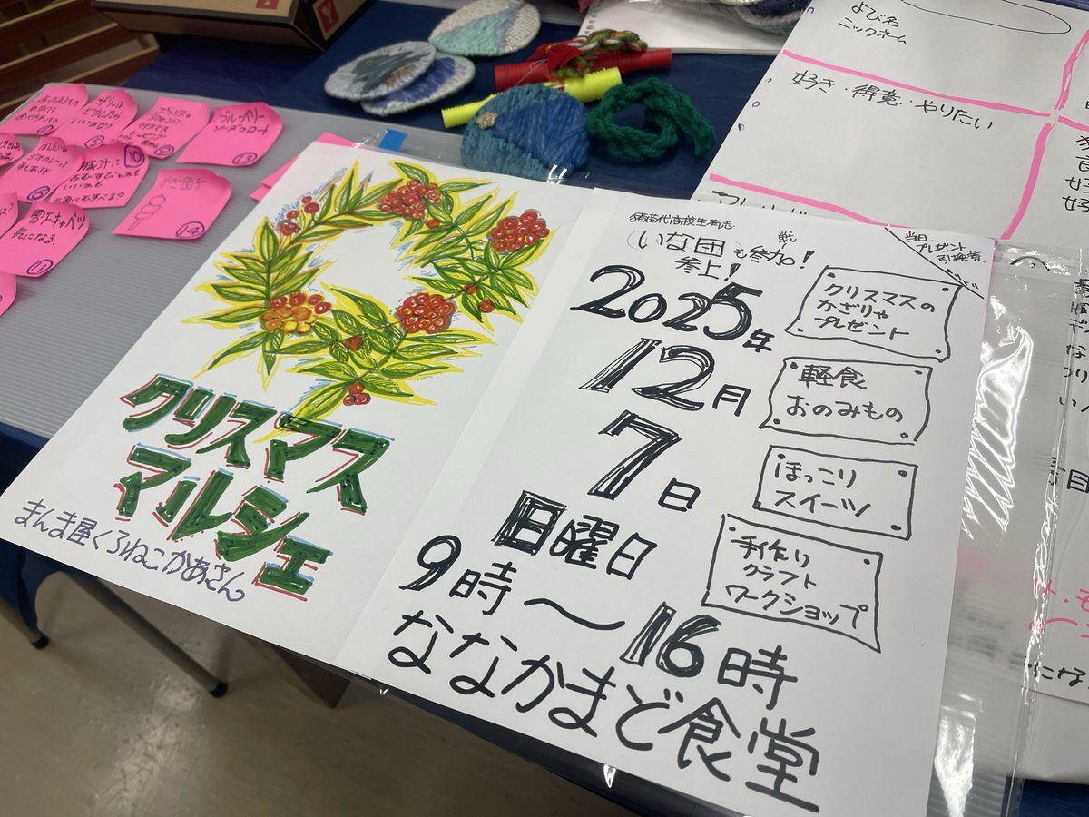 R7.11.19 クリスマスマルシェに向けて 『学びの収穫祭』に来場くださったクラフトアーティストの森本さん。生徒たちと何かはじめてみたいとの声から新たなプログラムがスタートです。 12月7日(日) #ななかまど食堂 にぜひぜひ足をお運びください。 #地域探究 #猪苗代 #クリスマスマルシェ pic.x.com/RM6ryHzzaS x.com/inako_tan9/sta…