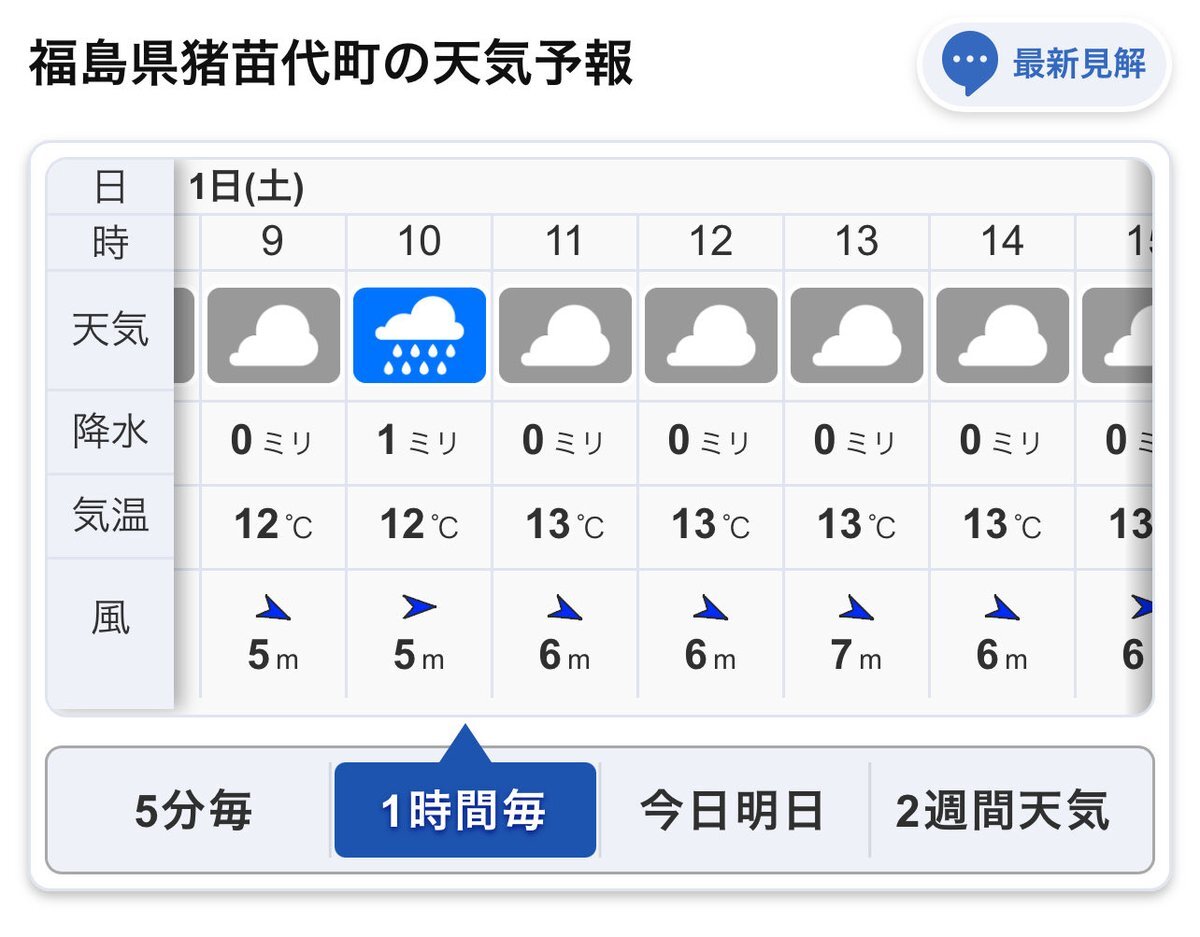 【天気予報とにらめっこ②】 #学びの収穫祭 9時30分開場、15時30分各ブースでの成果披露終了。 そして天気予報。 お!? #11月1日 #猪苗代高校 #地域探究 #地域みらい留学 #2年連続の雨模様を避けられるか? #ウェザーニュース pic.x.com/a3fSBxFJrU x.com/inako_tan9/sta…