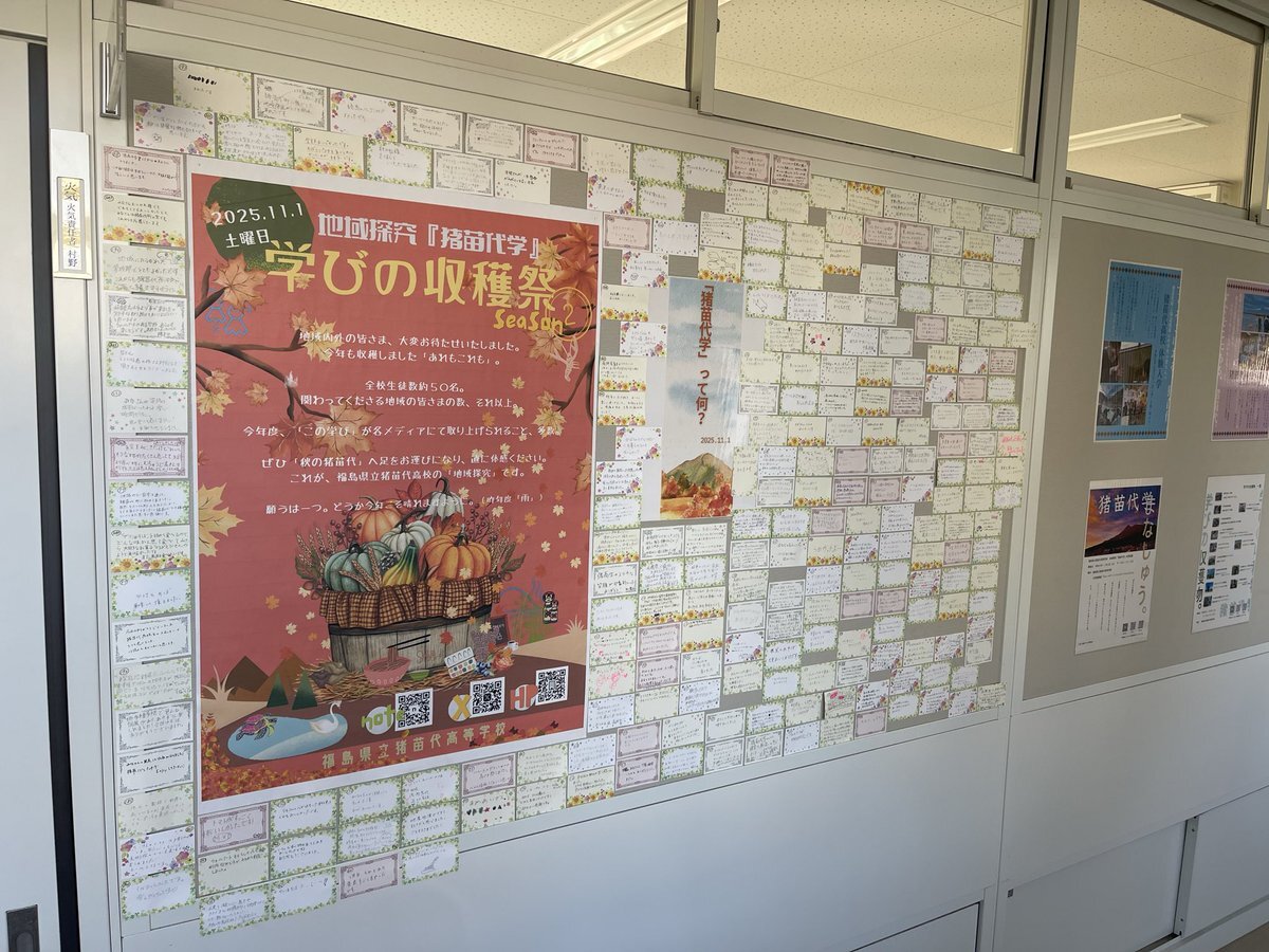 【大御礼】学びの収穫祭season2 無事に2年目の収穫祭が終了しました。昨年度の入場者数を大きく上回る400名以上の皆さまに足を運んでいただきました。 来場くださった皆さま、来場を検討くださった皆さま、心より感謝申し上げます。 まだまだ猪苗代高校の探究は深まりを見せます。ご期待ください。 x.com/inako_tan9/sta…