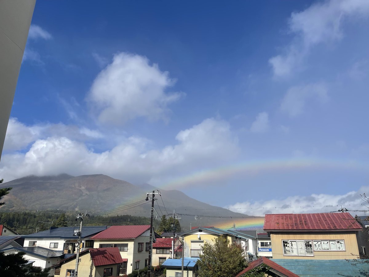 磐梯山の低いところに嘘のような虹🌈 #地域探究 #地域みらい留学 #学びの収穫祭 pic.x.com/ACCguxG3QY x.com/inako_tan9/sta…