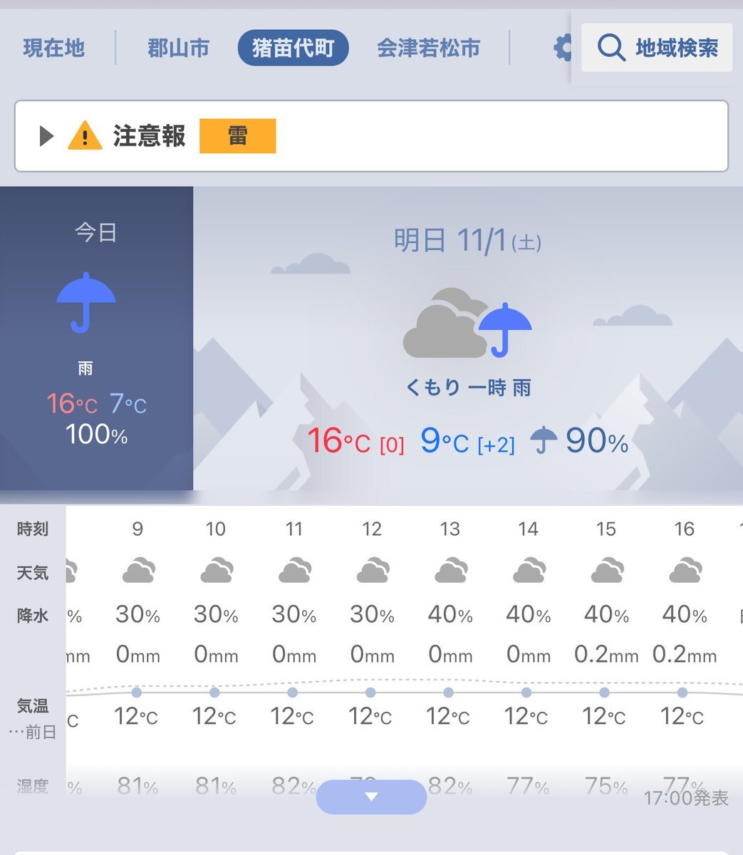 【天気予報とにらめっこ】 #学びの収穫祭、9時30分開場。もし雨が降っていなければ校舎北側前庭にて、9時20分よりオープニングセレモニー。 願わくばやりたい。 と天気予報をながめ、ん? これは午前中、ひょっとして雨降らなかったりしますかね?? #11月1日 #地域探究 #地域みらい留学 x.com/inako_tan9/sta…