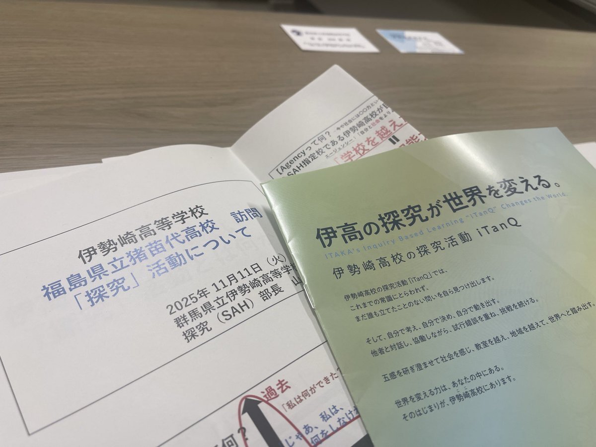 R7.11.11 #先進校視察② #伊勢崎高校 次年度に #地域みらい留学 1期生を迎い入れるため、探究プログラムのブラッシュアップ中の #猪苗代高校。 よいヒントをたくさんいただきました。 さあ、新たな春に向けて頑張らねば! #先生方 #生徒の皆さんご対応ありがとうございました #地域探究 pic.x.com/2NI9OkBdOA x.com/inako_tan9/sta…