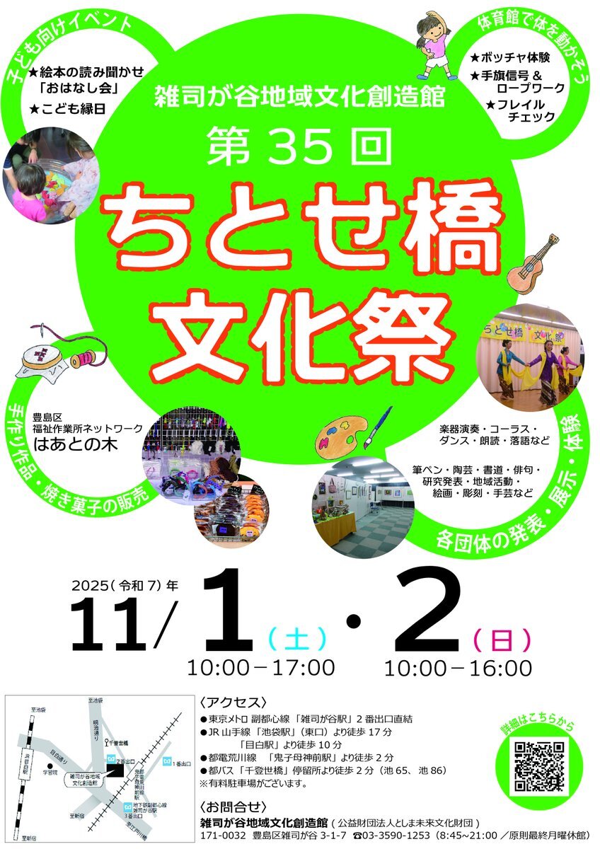 【施設情報】「第35回 #ちとせ橋文化祭 」が11月1日(土)2日(日)に開催されます。お楽しみに❣ 詳しくはこちら==>toshima-mirai.or.jp/tabid216.html?… #豊島区 #雑司が谷 #地域文化創造館 pic.x.com/Zbpnmmp7fR