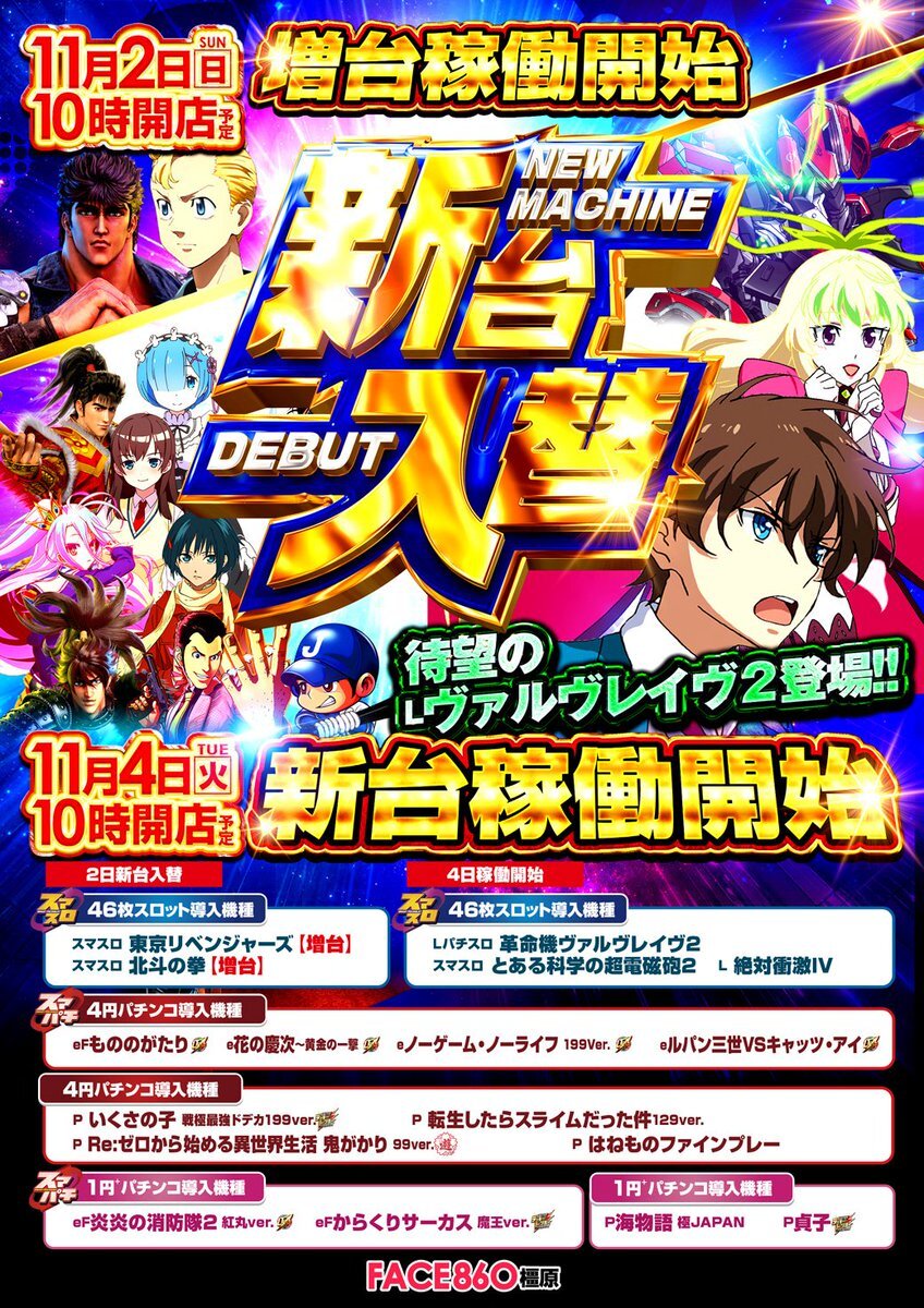 🔥超大型新台入替🔥 1⃣1⃣月4⃣日【火】 ✨VVV&慶次 地域最大設置✨ ✅スマスロに革命がおきる! #ヴァルヴレイヴ2 導入!! ✅傾奇御免! #花の慶次‐黄金の一撃‐ ✅その他最新台地域最大導入!! ✅スマパチ・スマスロ地域最大設置 #泉大津 #新台入替 #初日 #地域最大設置 #VVV #慶次 pic.x.com/Wnx1ZXpSea