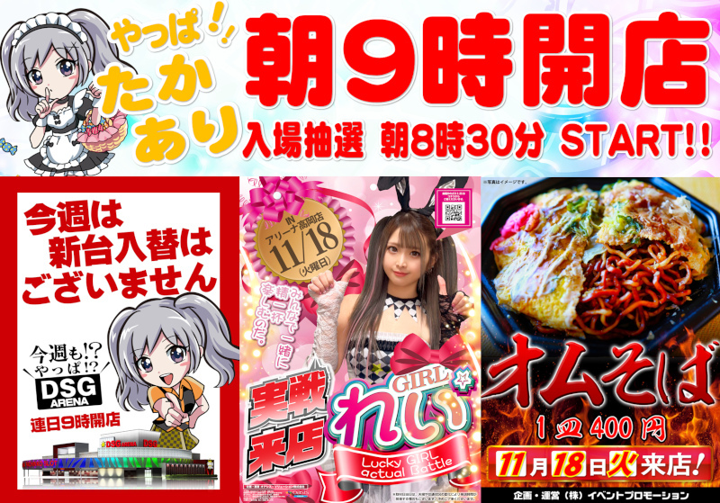今週は入替はありません‼ #連日朝9時開店 明日、18日 火曜日 made in 加賀ール😳 れいさん実戦来店👍👍👍 @re_reicheru 前回10月に来店された際は 見事な🎉🎉🎉 今月は、どんな展開を魅せるのか⁉ 📢入場抽選は、#朝8時30分~ #地域最大設置 #最新設備 pic.x.com/keXWEDUesx