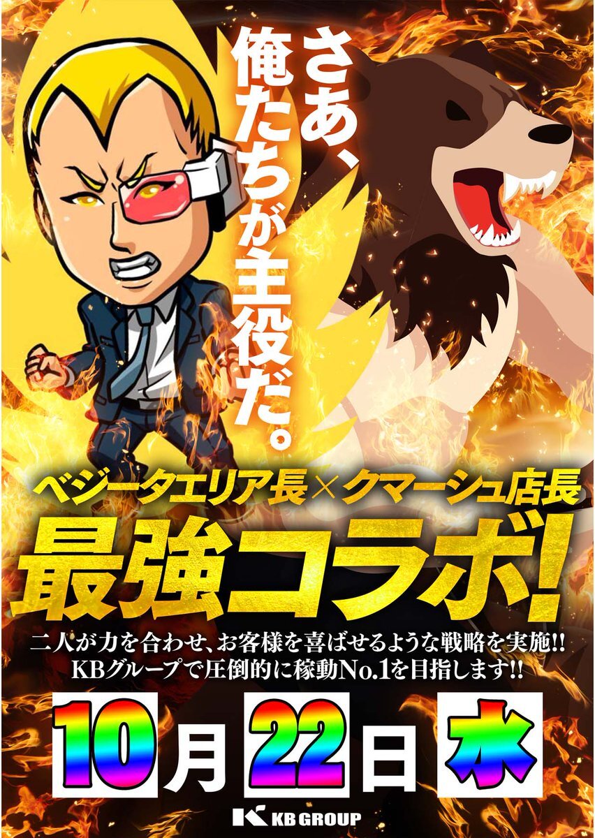 明日10月22日朝9時開店‼ ベジータエリア長×クマ―シュ店長 🔥🔥🔥最強コラボ🔥🔥🔥 ※入場抽選は8時40分予定 #さぁ俺たちが主役だ #新台好評稼働中 #ネオアイムジャグラー #地域最大設置 pic.x.com/IaxFHpRKEQ