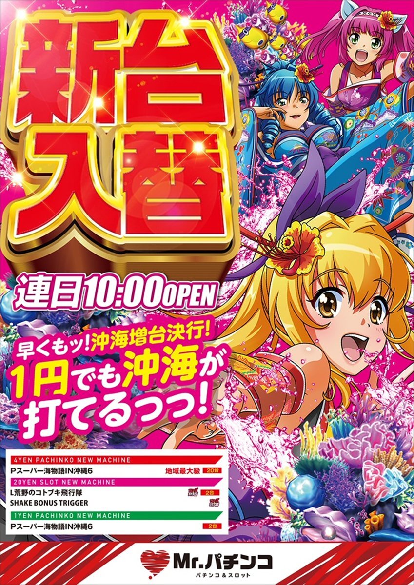 おはようございます🌞 #ミスターパチンコ泉大津 1⃣0⃣月2⃣7⃣日【月】 1⃣0⃣時開店! ミスパチで遊びつくせ!! #スーパー海物語IN沖縄6 #地域最大設置 さらに #増台 1⃣円パチンコにも導入して楽しみやすく❗️ ご来店お待ちしております。 #ミスパチ #泉大津 #大海物語 #ジャグラー pic.x.com/IGyOkPjanW