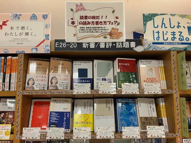 【新書】 E26-20新書コーナーにて「読書の秋だ!!本の読み方書き方オリジナルフェア」を開催中⭐ #読書術、#執筆術 の新書を集めてみました📘 ぜひこの機会に読書術、執筆術の本を読んで、文字活字をもっと楽しむ秋にしませんか?🍁 是非、お立ち寄りくださいませ♪ y.k(YT) pic.x.com/Yj4o9IYK8H
