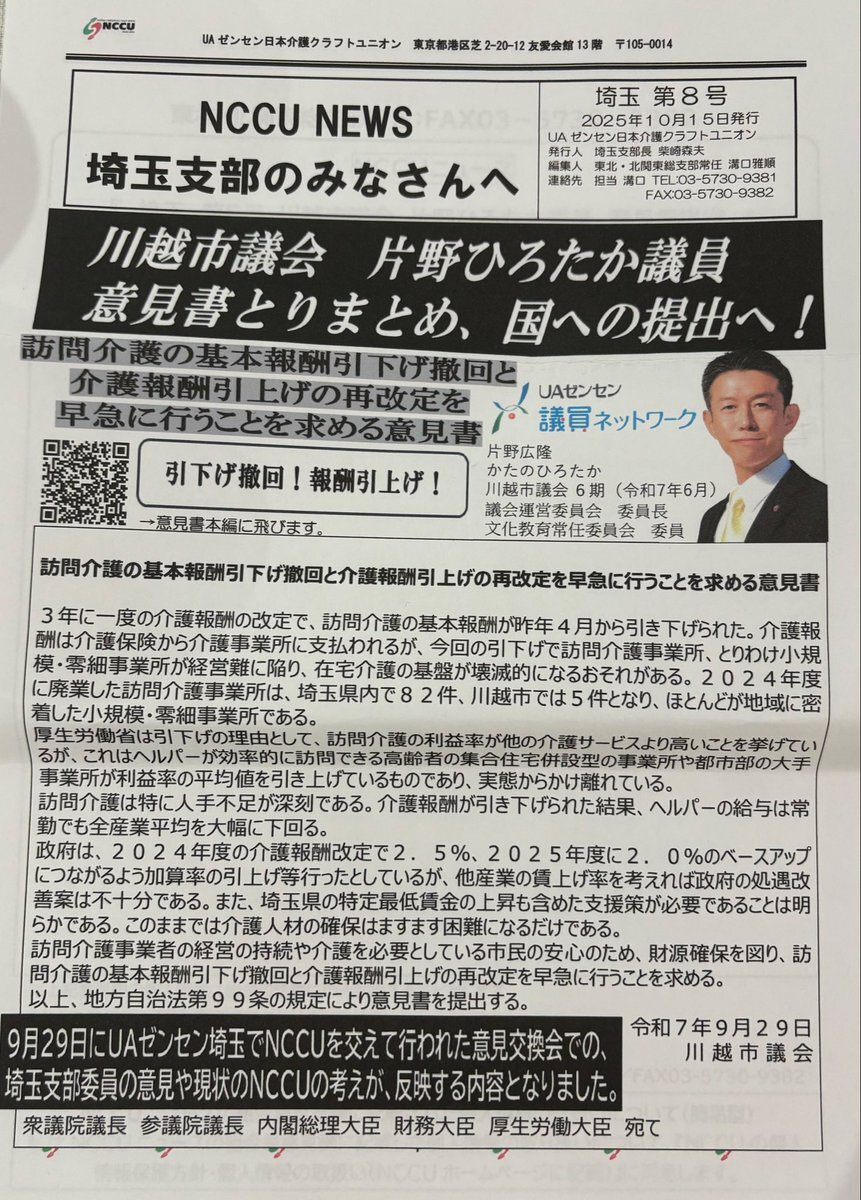 #訪問介護 基本報酬がさがりこのままでは在宅介護の基盤が壊滅的に!との声を仲間の片野川越市議(@katano_36 ) が国に声を繋いでいます。#NCCU の会報でいただきました。#諦めない ケアマネで現場にいますが、介護現場は本当に疲弊してます。 #埼玉県ケアマネジャー協会 #変えよう所沢 #知ろう所沢 pic.x.com/mnOCXS2WFq