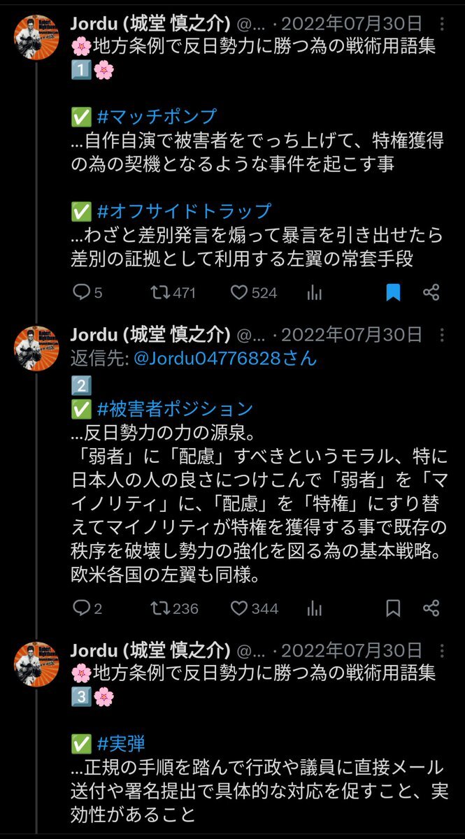 返信先:@miraisouzo2024他1人#埼玉県ヘイトスピーチ条例反対 迷惑行為で泣く泣く転居する程の被害住民の訴えを デマだのヘイトだのとすり替え続けた左翼活動家、川口・蕨ナントカの会、メディア、国会議員そして自民党埼玉県議団 歴史修正とヘイト条例での更なる言論弾圧を 絶対に許す訳にはいきません x.com/Jordu04776828/…