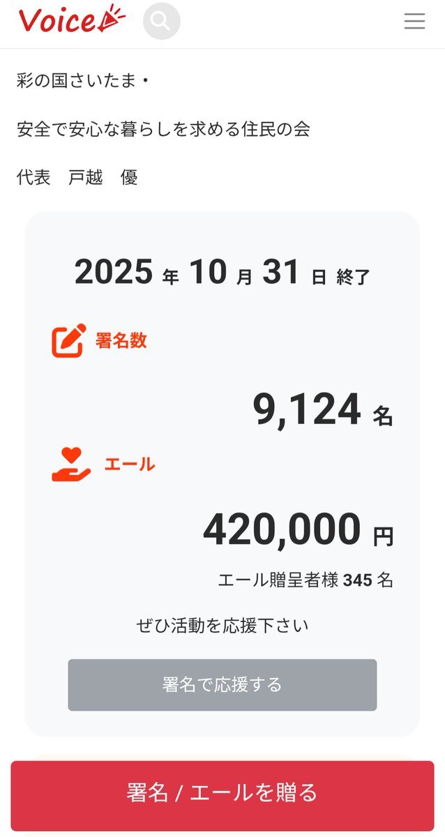 #埼玉県ヘイトスピーチ条例反対 の署名に協力お願いします 埼玉県だけの問題でなくて、全国に飛び火するのを狙った危険な条例です 対岸の火事ではなく次はうちの自治体かも…と考えてみてください ⬇️こちらから署名できます voice.charity/events/5248 署名リンク voice.charity/events/5248 x.com/Jordu04776828/…