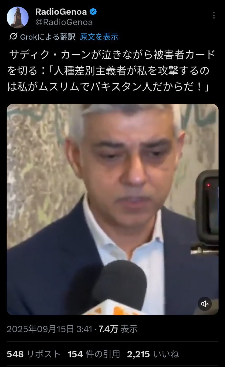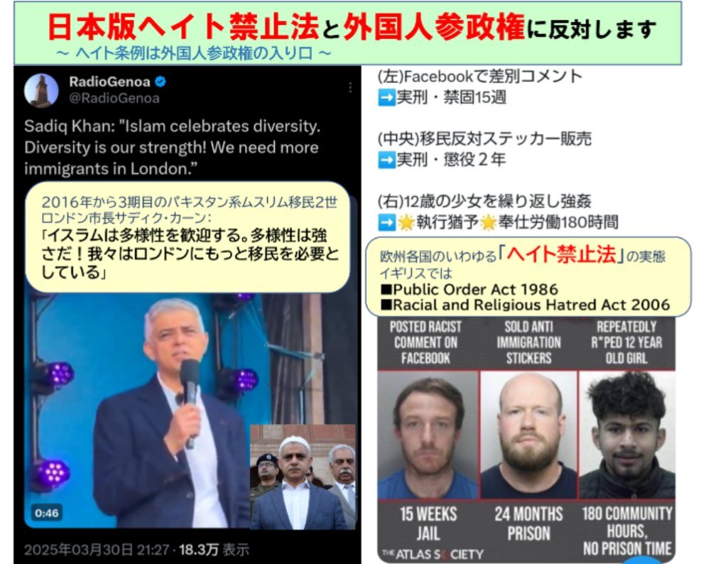返信先:@penpen_popnewsイギリスが #サディク・カーン のような移民(2世)に支配され 白人が虐げられる社会になったターニングポイントは #ヘイト禁止法 です 移民政策に批判の声を上げる事すら『差別』で懲役刑 日本のイギリス化を止められるのは今しかありません #埼玉県ヘイトスピーチ条例反対 x.com/Jordu04776828/… pic.x.com/Zthuu82uL0