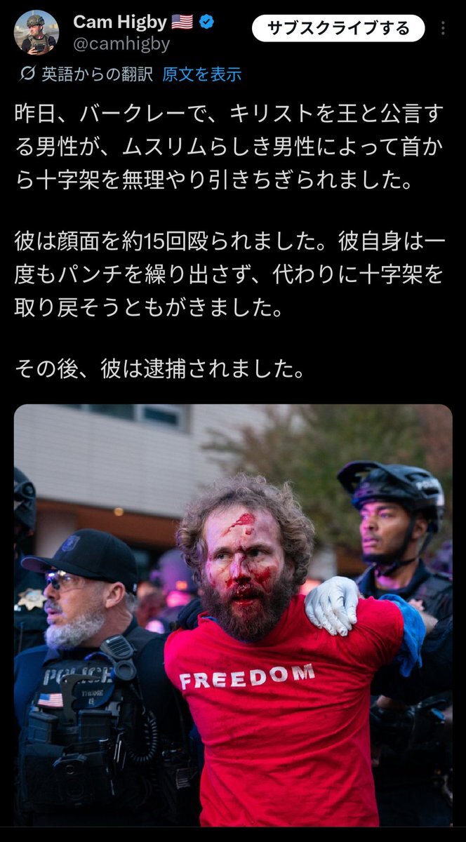 『彼はムスリムらしき男によって、首から十字架を引きちぎられた。 顔面を15回殴られたが彼自身はパンチを出さず、十字架を取り戻そうともがいた。 その後逮捕されたのはムスリムでなく彼のほうだった。』 イギリスの #ヘイト禁止法 ➡️移民差別、宗教差別は懲役刑 #埼玉県ヘイトスピーチ条例反対 pic.x.com/o68cdAxflg x.com/camhigby/statu…