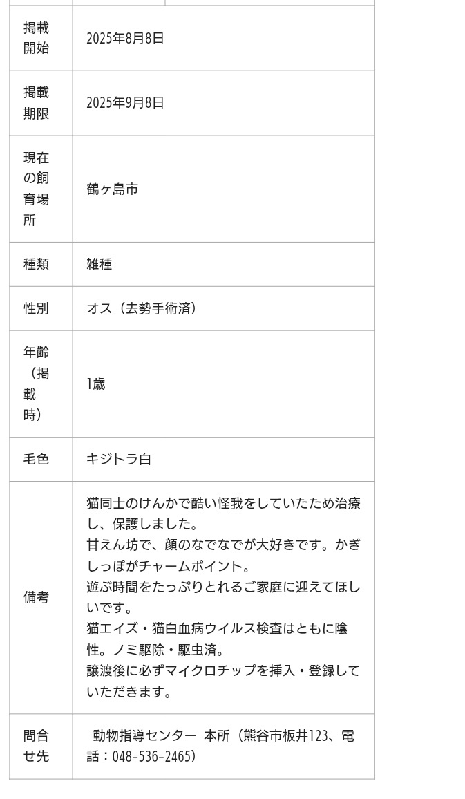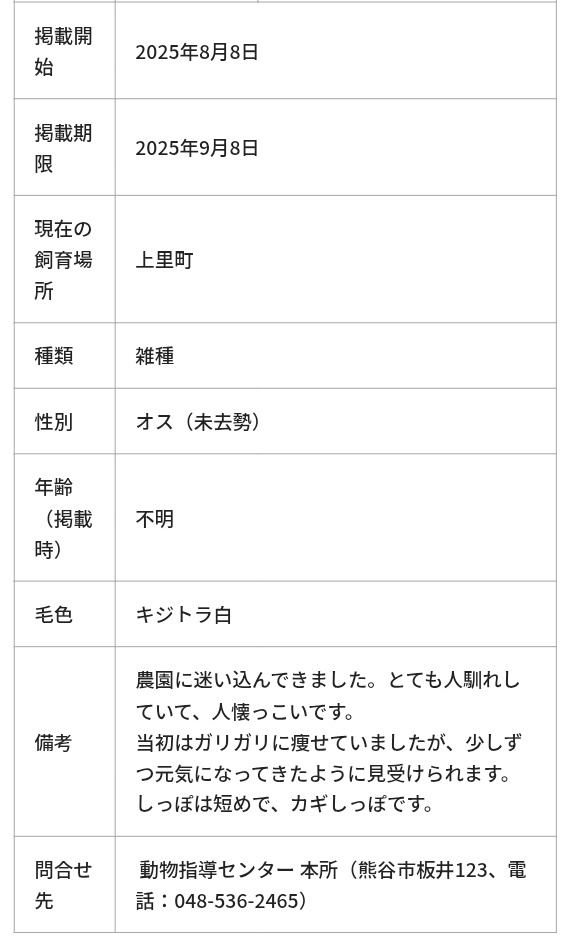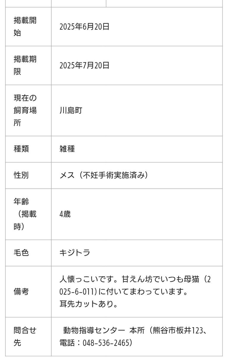 #埼玉県 #埼玉県譲渡猫 #猫の飼い主さん募集 #譲渡猫 #譲渡可能猫 #家族募集 #里親募集 飼い主さんからの直接譲渡、センターは連絡先情報等の仲介のみになります 🔴問い合わせ先🔴 #埼玉県動物指導センター 本所 ☎048-536-2465 pref.saitama.lg.jp/b0716/doubutu-… pic.x.com/c1rKfJ2E45