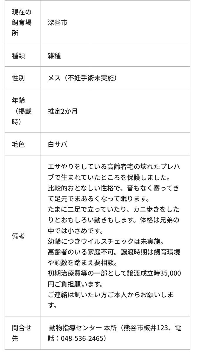 #埼玉県 #埼玉県譲渡猫 #多頭飼育現場からのレスキュー #譲渡猫 #譲渡可能猫 #家族募集 #里親募集 飼い主さんからの直接譲渡、センターは連絡先情報等の仲介のみになります 🔴問い合わせ先🔴 埼玉県動物指導センター本所 ☎048-536-2465 pref.saitama.lg.jp/b0716/doubutu-… 🟢高齢者のみの世帯不可🟢 pic.x.com/mqhUZ3FGyO