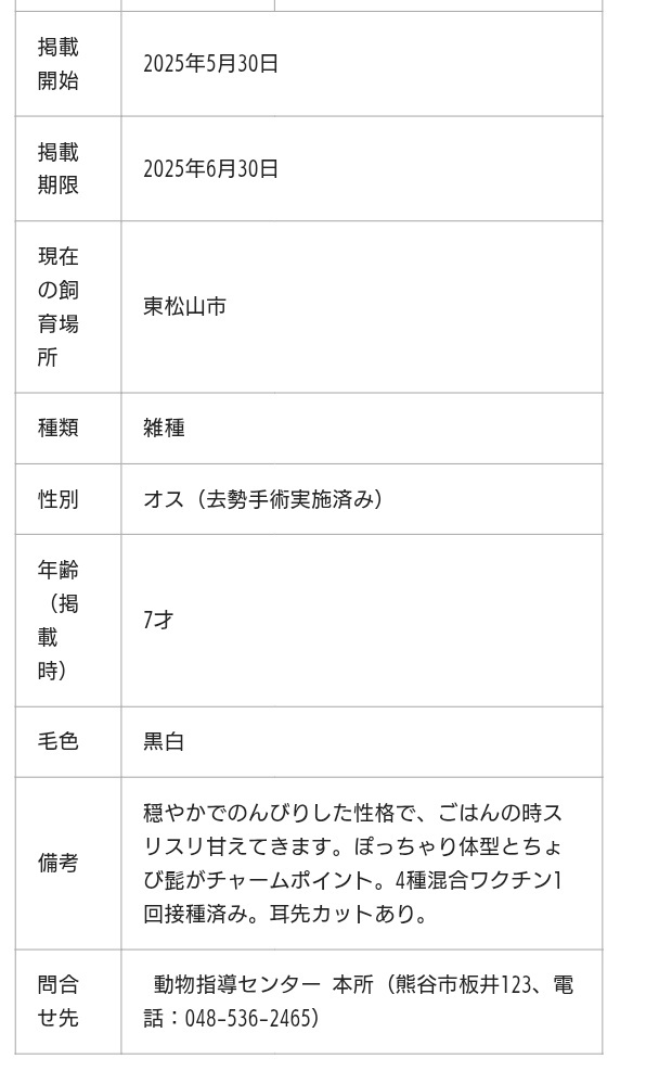 #埼玉県 #埼玉県譲渡猫 #猫の飼い主さん募集 #譲渡猫 #譲渡可能猫 #家族募集 #里親募集 飼い主さんからの直接譲渡、センターは連絡先情報等の仲介のみになります 🔴問い合わせ先🔴 #埼玉県動物指導センター 本所 ☎048-536-2465 pref.saitama.lg.jp/b0716/doubutu-… pic.x.com/tX5WVh9WTx