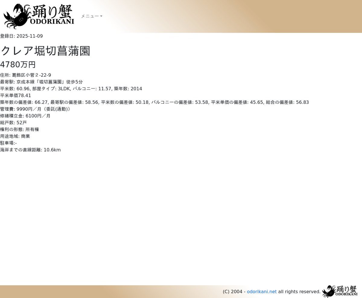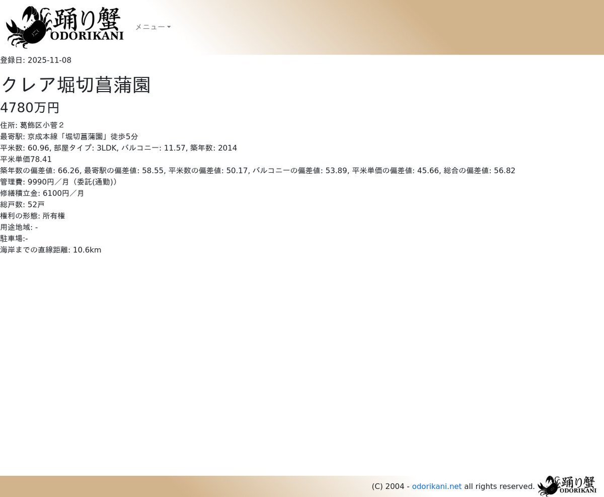 [おすすめマンション] クレア堀切菖蒲園 -- 4780万円 / 登録日: 2025-11-08 / 築年数偏差値:66.26 / 総合偏差値:56.82 / 権利の形態:所有権 re.odorikani.net/m/e/78745915.p… #踊り蟹 #堀切菖蒲園駅 #葛飾区小菅 pic.x.com/fg2I3792Il