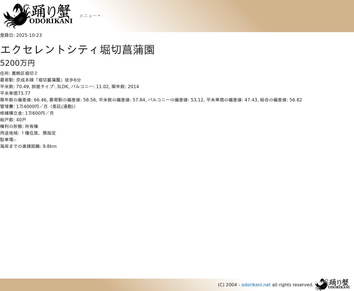 [おすすめマンション] エクセレントシティ堀切菖蒲園 -- 5200万円 / 登録日: 2025-10-23 / 築年数偏差値:66.46 / 総合偏差値:56.82 / 権利の形態:所有権 re.odorikani.net/m/e/78642230.p… #踊り蟹 #堀切菖蒲園駅 #葛飾区堀切 pic.x.com/rmZIQSc8jd