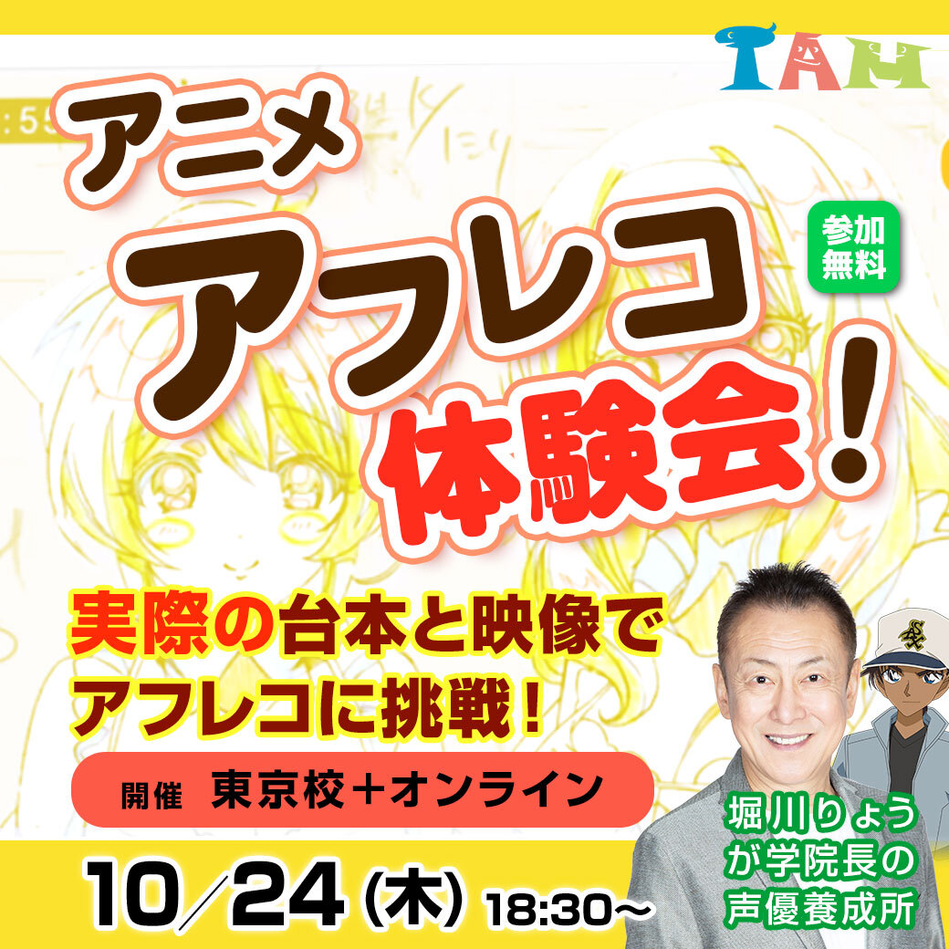 締切間近⭐レア企画【アフレコ体験会】24日開催❗<#堀川りょう の #声優養成所> 実際に使われた✨映像と台本で、アニメアフレコに挑戦! レクチャーします🙋初心者歓迎! ⭐10月24日(木)18:30~ (東京校・オンラインで全国からご参加可能) ▼ご予約(参加無料)▼ iam.tv/nittei/online-… pic.x.com/I1VErjbIIR