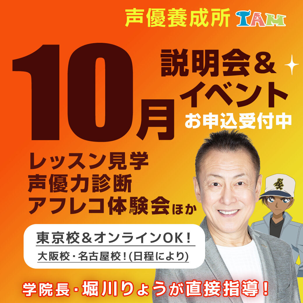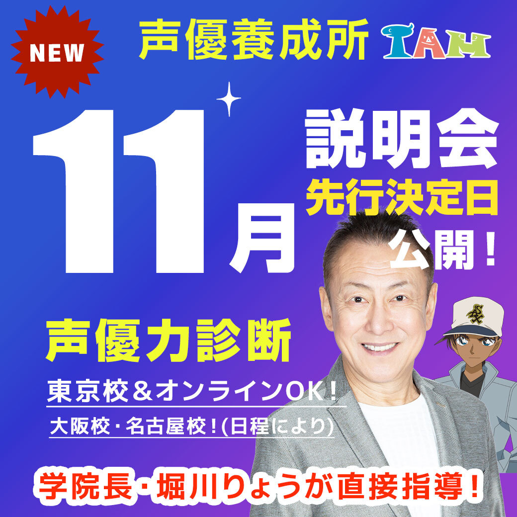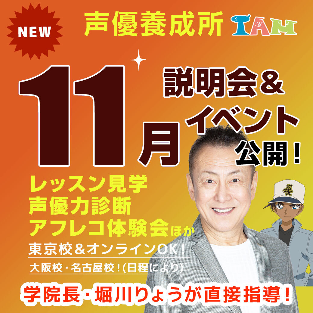 #声優 になるなら❗服部平次&ベジータ役声優 #堀川りょう が直接指導の #声優養成所 で⭐ 説明会&イベント連日開催中✨ 日程・ご予約:iam.tv/nittei/online-… ⭐堀川りょうの声優力診断 11/12(水),18(火)13:45 ⭐希望者は特待生オーディション 11/11(火)14:00 ほか 参加無料、オンライン🙆 pic.x.com/7jgwbmpw8a
