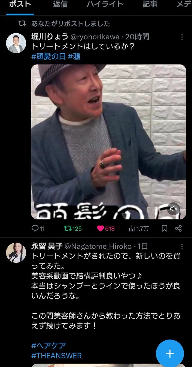 先日の #頭髪の日 に、新しいトリートメントを買ったというポストをしてショート動画で 「トリートメントはしているか」 と読ませていただいたら、その次に本家本元さまが登場なされてびくついてます。 ラインハルト元帥閣下の御髪(おぐし)もぜひ✨️ #堀川りょう さん pic.x.com/xsyuy24LXL
