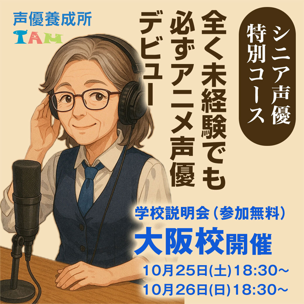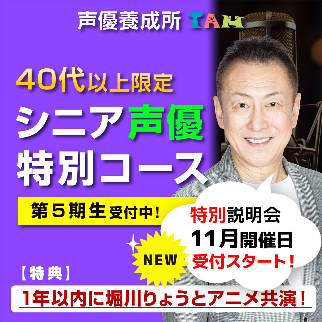 【NEW】大阪開催日追加<シニア #声優 特別コース>11月特別日程、受付中✨ぜひご参加ください⭐ アニメ監督、プロダクション代表のお話 ⭐11/15(土)、16(日)11時 アフレコ体験会 ⭐11/24(月・祝)17時半 ほか #堀川りょう の授業見学会も ▼資料請求&説明会日程・お申込 forms.gle/yvjFLvso5vcmTZ… pic.x.com/N8e8hKZ3Y7