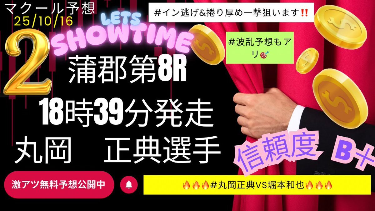 🎯マクール先生【公式無料予想】②本目 🏁蒲郡8R|18:39発走信頼度:B+ 注目カード🔥 丸岡正典 vs 堀本和也 34コースからの捲り一撃狙います‼️ 宜しくお願いします🙇 note.com/makuulu__sense… #蒲郡競艇予想 #無料予想 #万舟予想 #丸岡正典 #堀本和也 pic.x.com/e9rAIHqw98
