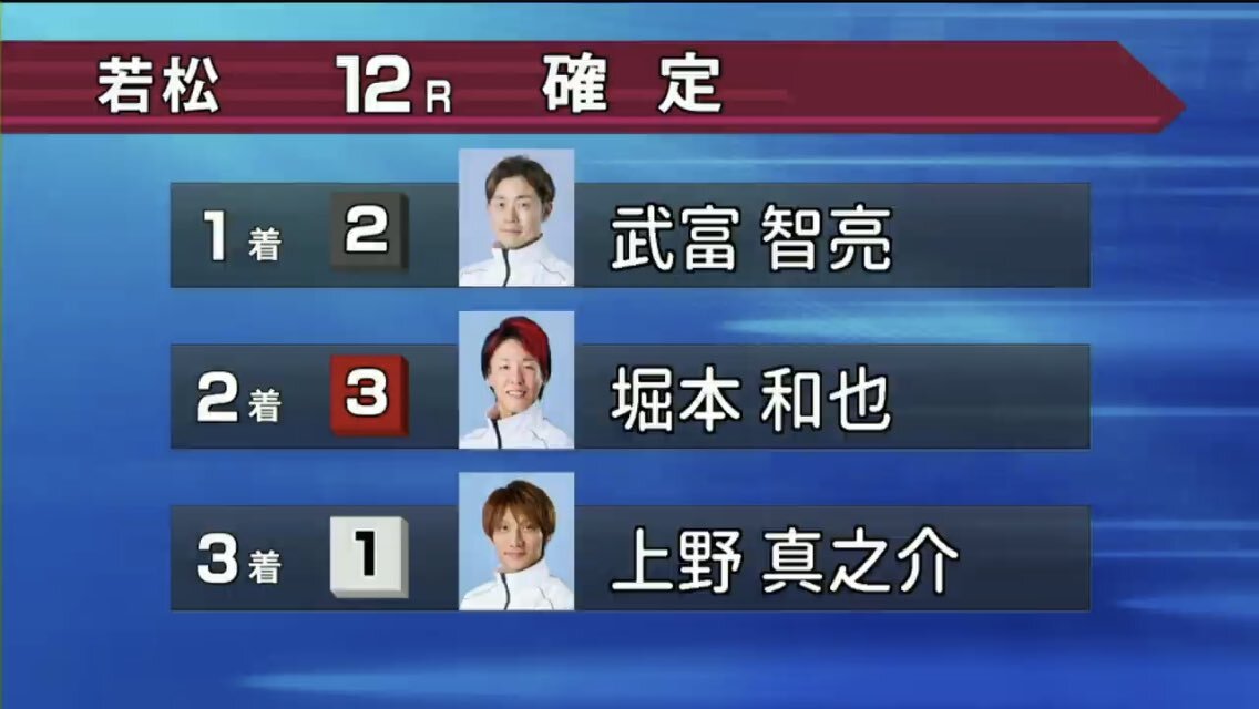 かぱ!🥒 西日本スポーツ杯 最終日 ①#上野真之介 選手② #武富智亮 選手③#堀本和也 選手で接戦となった優勝戦は、2周1マークで差しを決めた武富選手がV🏁🚤 1年10ヶ月ぶりの優勝となったのだ🏆✨ 武富選手おめでとうなのだ👏😊 #ボートレース若松 #ボートレース #ボートレーサー #北九州 pic.x.com/nl0O5fNQHd