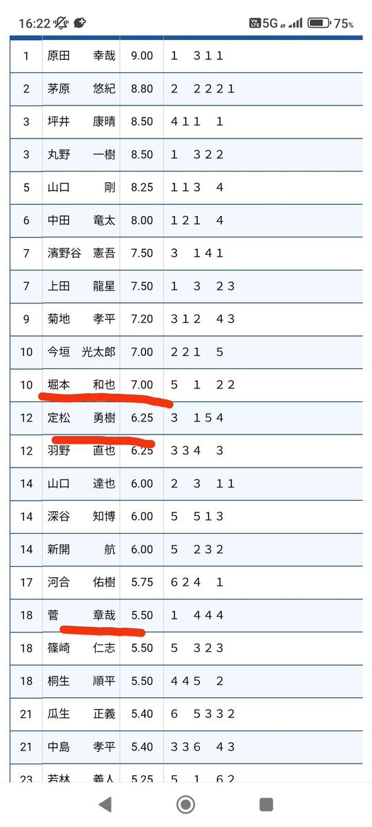 堀本くん10位タイ! 定松っちゃん12位! 菅先輩ボーダー近辺! 明日は早くも予選最終日。順位アップ目指せ!! #定松勇樹 #堀本和也 #菅章哉 pic.x.com/8YGrHIrF5r