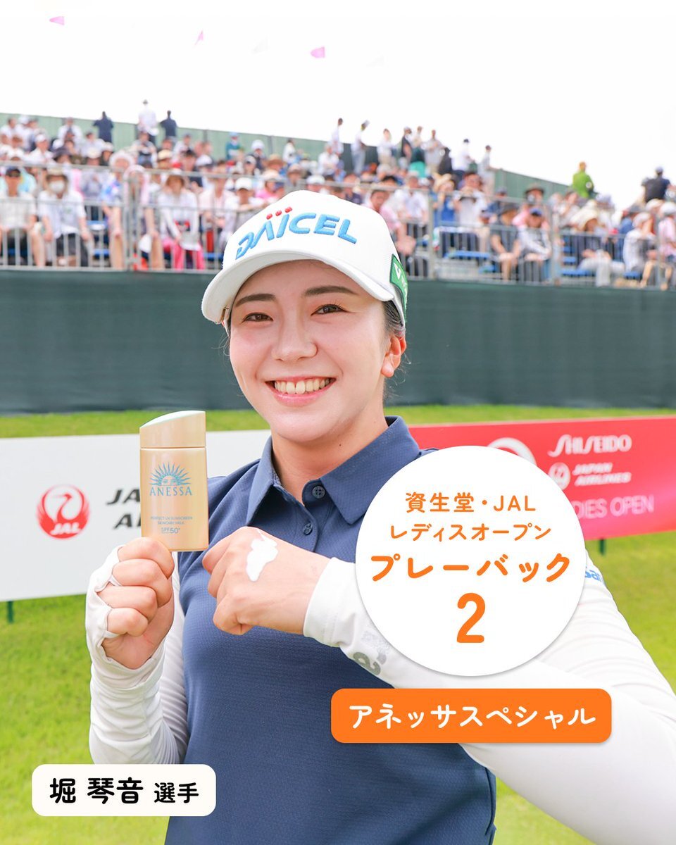 ⛳資生堂・JAL レディスオープン⛳ プレーバック② ~アネッサスペシャル~ 日焼け対策バッチリで試合に臨む、選手たちの笑顔のショットをご覧ください🎵 #堀琴音 #尾関彩美悠 #蛭田みな美 pic.x.com/yjPPRpvjq8