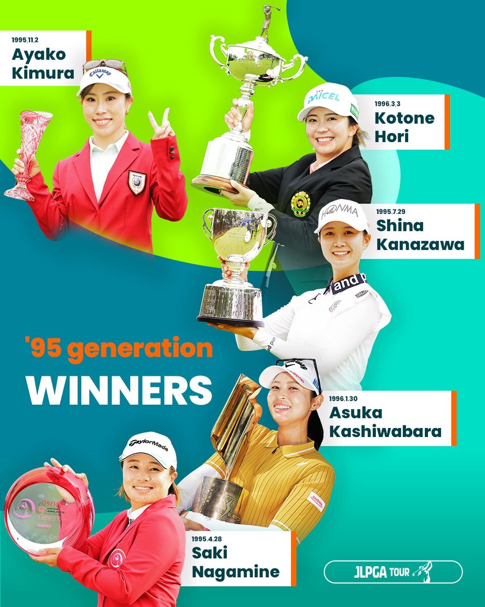 今季のJLPGAツアーを牽引する「95年世代」🏆 #木村彩子(@aykhrkyk) #堀琴音(@kotone_133) #金澤志奈 #柏原明日架 #永峰咲希 黄金・プラチナ・ダイヤモンドに続く、 この世代の“呼び名”は?✨ #JLPGA pic.x.com/ECnkRwCC3M
