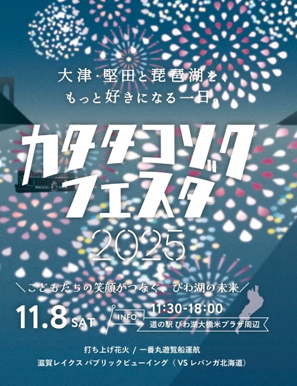 📣 #堅田湖族フェスタ2025 のチラシ完成✨ 11/8(土)11:30〜18:00 @道の駅びわ湖大橋米プラザ周辺 びわ湖の夜空に打ち上げ花火🎆 #滋賀レイクス PV(vsレバンガ北海道)🔥 🚤一番丸の湖上遊覧&マルシェも開催! 家族や友人と湖畔で楽しもう😊 #堅田 #びわ湖 #花火 #湖族フェスタ #一番丸湖上遊覧 pic.x.com/bPUbCwlmYB