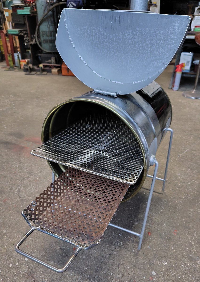 オイル缶で作るピザ窯のバージョン4が完成しました🤭 これは売り物用ではなく宣伝用兼日常使い用にするそうです🤣笑 自分たちで使ってみて更になる商品開発に繋げていきます😎 #滋賀県 #大津市 #堅田 #鉄工 #オーダーメイド #アップサイクル #タマブチマリン