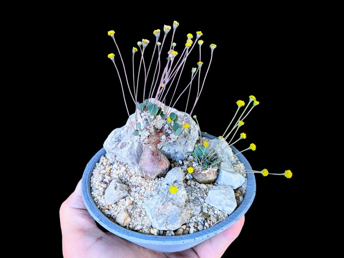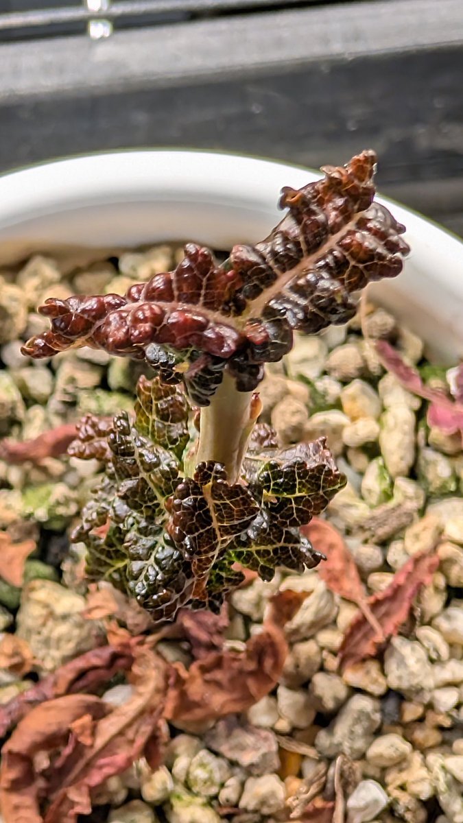 Othonna intermedia 実生のインターメディア まぁ現地球なんて入ってこないけど😅 無事に目覚めて水やったら塊根ふっくらした🙂 #オトンナ #Othonna #塊根植物 pic.x.com/FXVoODQRiC
