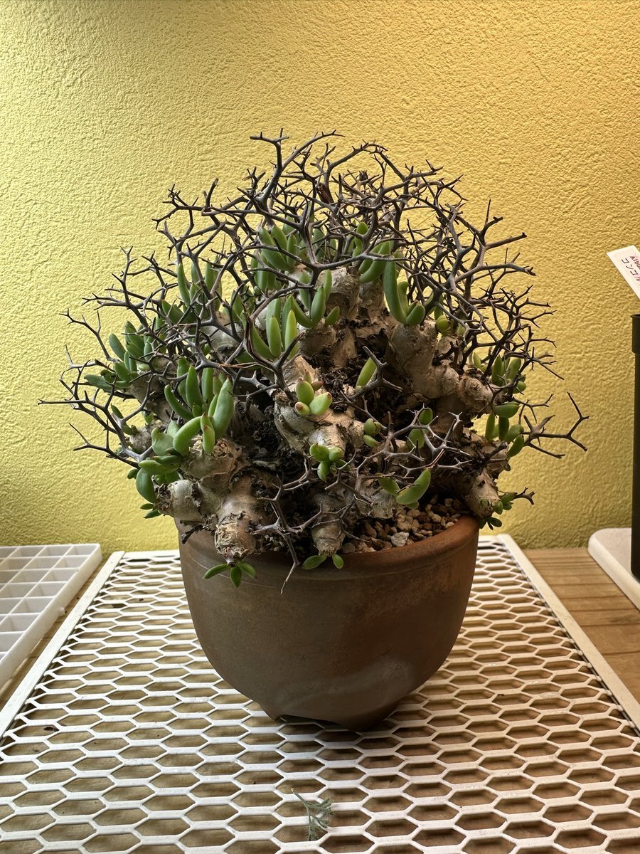 パキポ族の中でも ついつい “下に見てしまう…“ (🙏) デンシだが、 この時期は #グラキリス よりも綺麗な 紅葉🍁を楽しませてくれる、🙂 #パキポディウム #塊根植物 pic.x.com/wOwBPikFQk