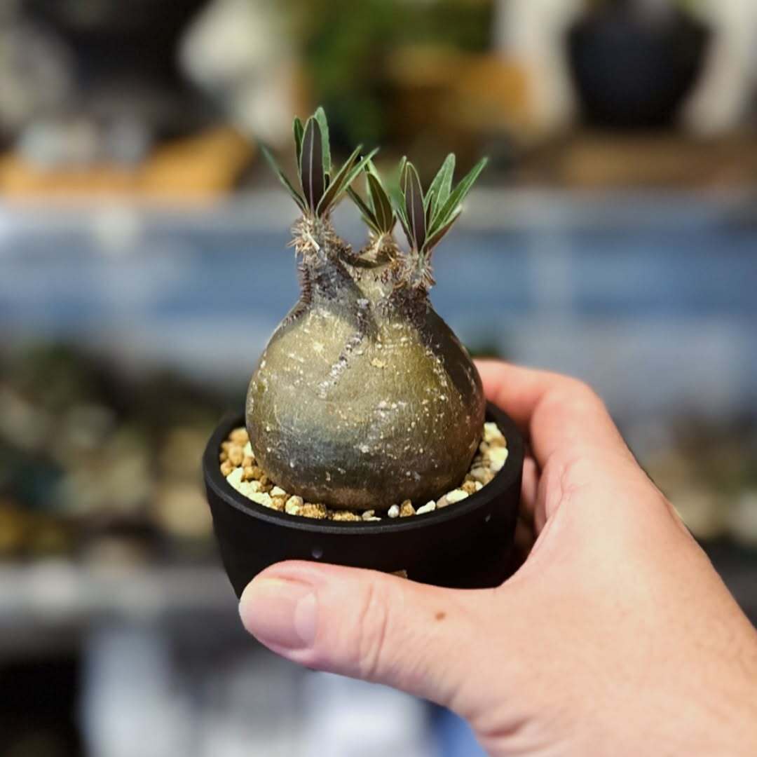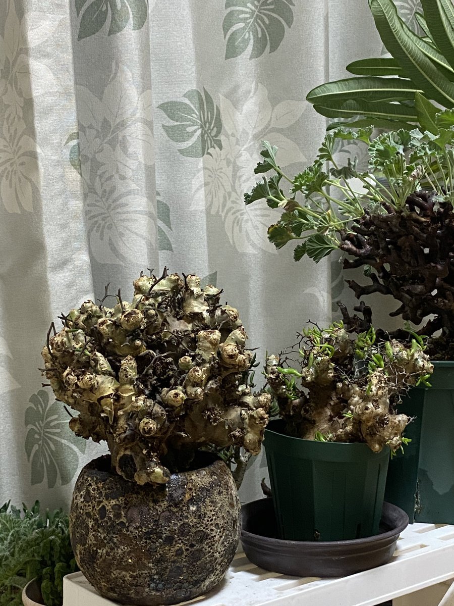 小さい方の #万物想。塊根部が異様に大きく、プラ鉢が楕円形に歪んでいる。広めの鉢に植え替えたい。 やや大きめの株と並べてもそれほど引けを取らない。これで発根済み価格5,000円は安い!安い安い!安い安い!(煉獄風に) #塊根植物 #観葉植物 pic.x.com/9KrgRT5WDa