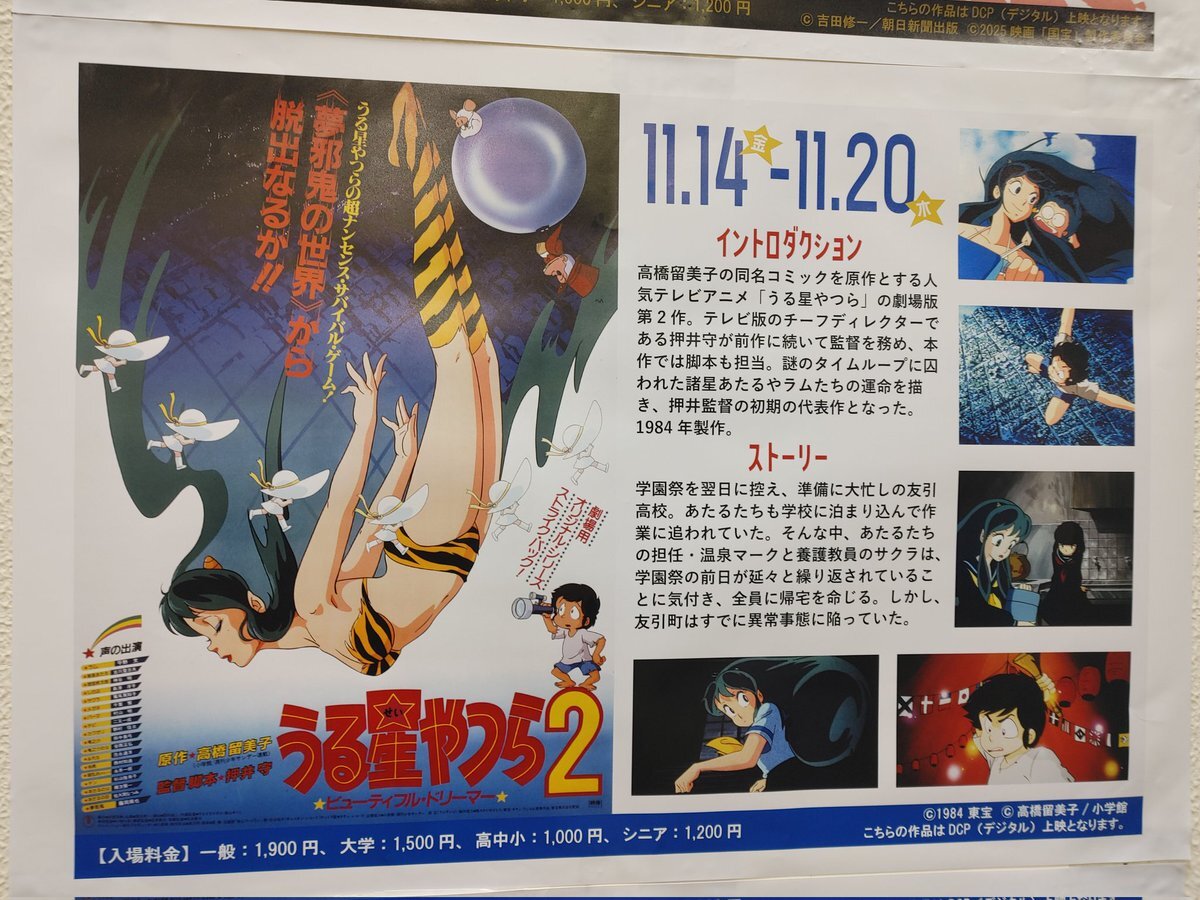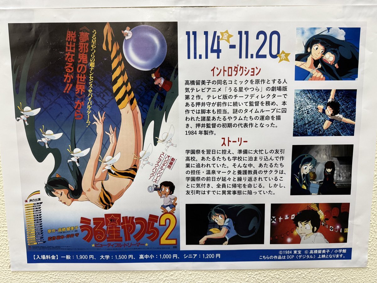 今日は、なんばパークスシネマで「時をかける少女」からの〜、塚口サンサン劇場で「うる星やつら2 ビューティフル・ドリーマー」を観ます!・:*+.\(( °ω° ))/.:+ ひとりで『W守まつり』!!!笑 #細田守 #押井守 #なんばパークスシネマ #塚口サンサン劇場 pic.x.com/iasGlV70W4