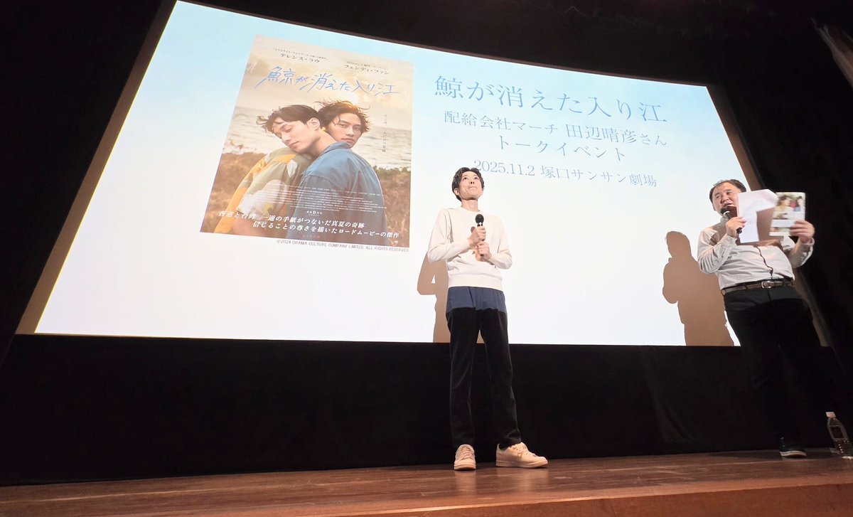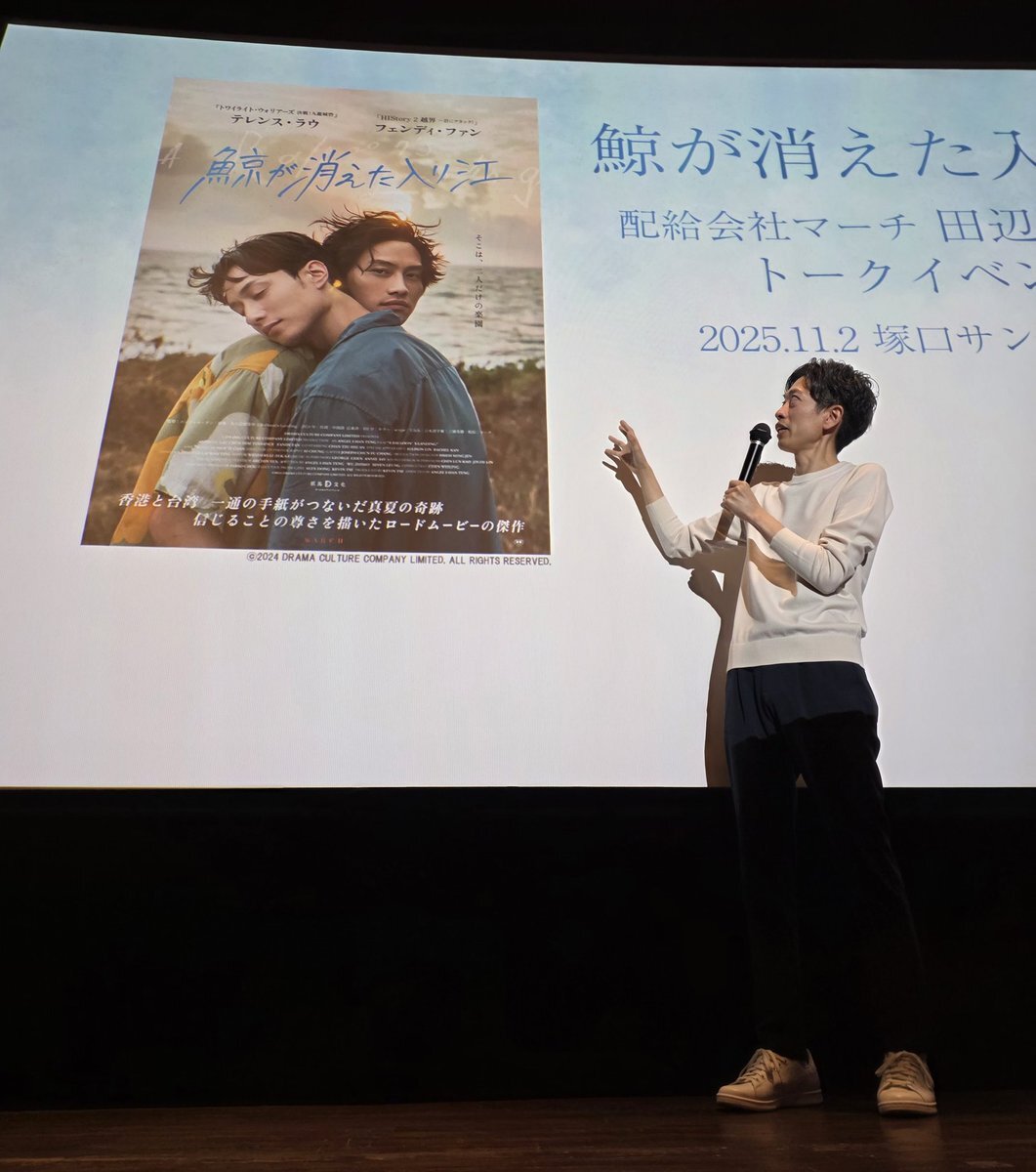 明日14:50の回『#鯨が消えた入り江』上映終了後に、本作を配給した配給会社マーチの田辺晴彦さんによるトークイベントがあります!まだもう少しお席ございます!配給会社の方のお話は面白いです!スクリーンの裏側に込めた思いを聞くと、本作はもちろん、さらに映画を好きになると思います!お早めに!