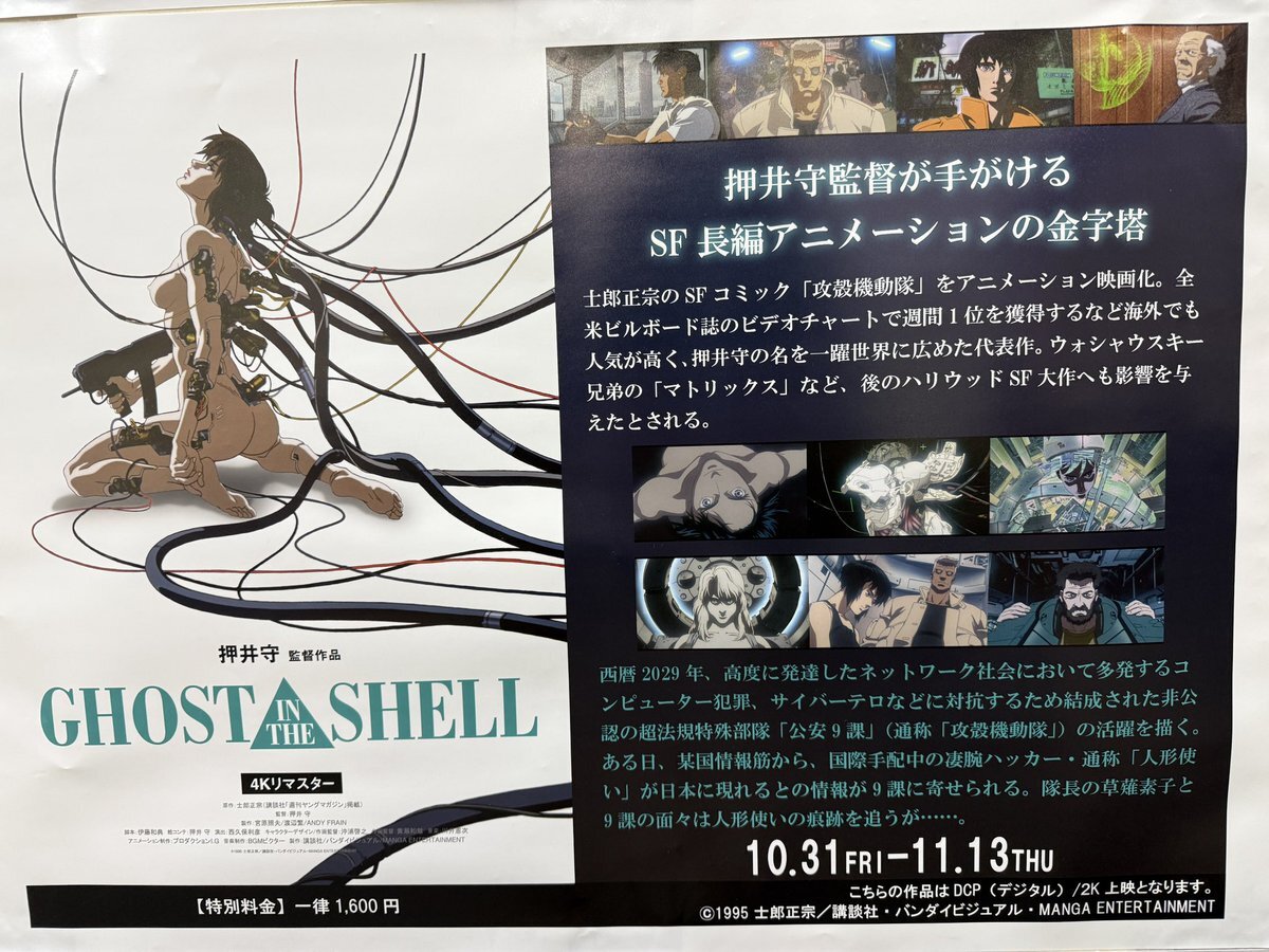 名作は何度観てもいい。 パンフレット復刻や入場特典まで、最近リバイバル上映が活発で嬉しいことだ。 #塚口サンサン劇場 #GHOSTINTHESHELL #Filmarks pic.x.com/jLfkXNgCf9