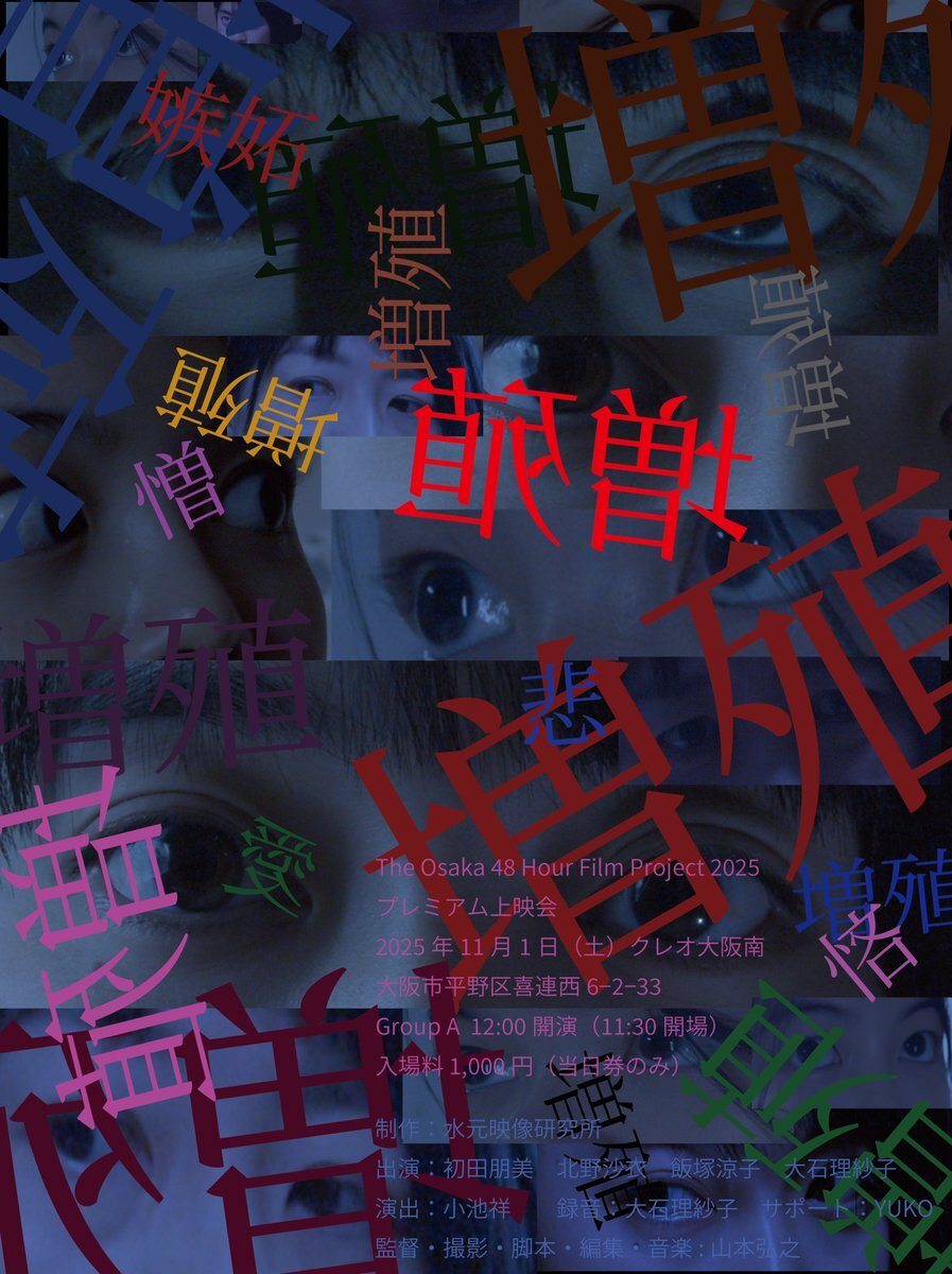 ポスターです! ・Team:水元映像研究所 ・Title : 『増殖』 ・Director:山本弘之 ・Genre:ホラー ・11月1日(土)12:00〜 上映 Group : A ・場所:@クレオ大阪南館