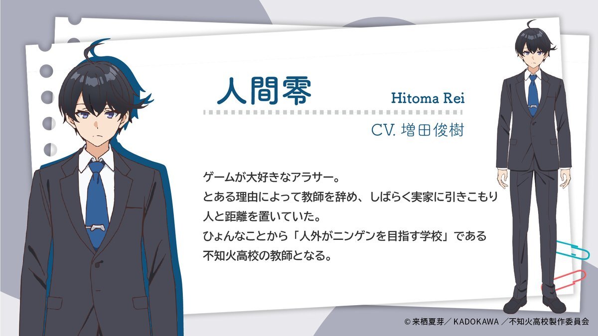 🏫キャラクター紹介🏫 .˚⊹┈┈┈ 🧑‍🏫人間零(CV. #増田俊樹)        ┈┈┈┈‧⁺ ⊹ ゲームが大好きなアラサー。 とある理由によって教師を辞め、しばらく実家に引きこもり人と距離を置いていた。ひょんなことから「人外がニンゲンを目指す学校」である不知火高校の教師となる。 #人外教室 pic.x.com/UYT1pDmyZk