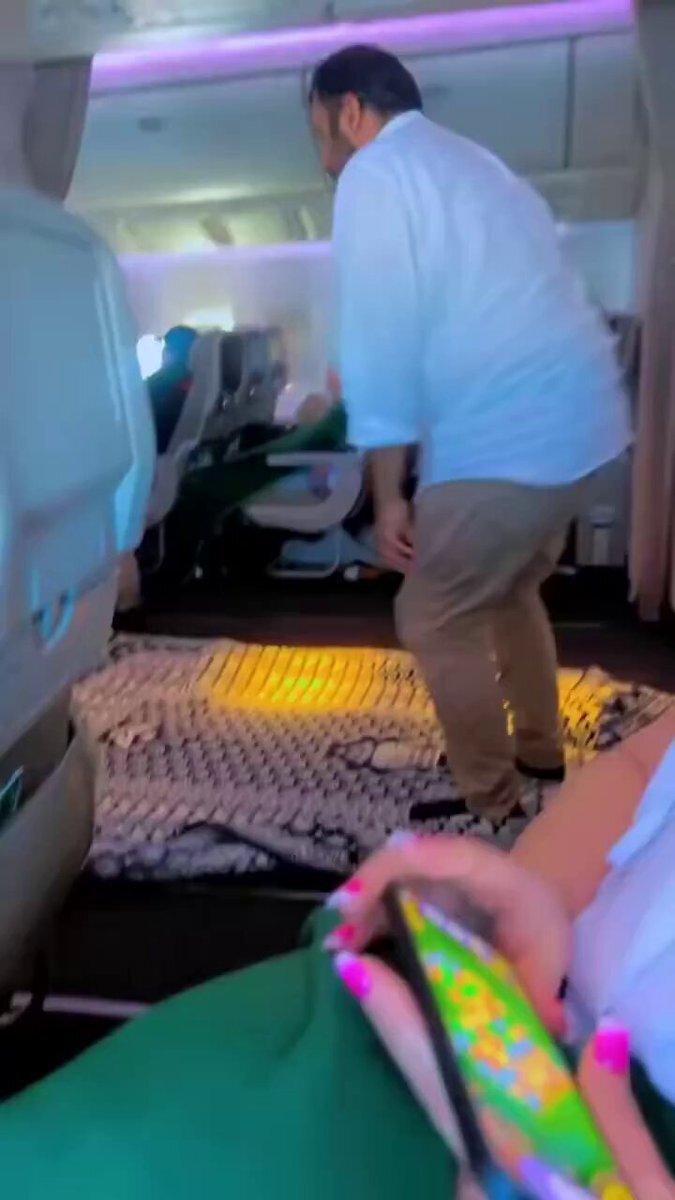 聖地メッカ(マッカ)の方角は飛行機の進行方向なのだろうか? この旅客機はメッカへ向かっているのかな? >旅客機内通路で礼拝を始めるイスラム教徒(ムスリム) #長岡京市 #増田真知宇 #長岡京 京都府長岡京市 増田真知宇(ますだまちう)先生 x.com/YukokuTV1/stat…