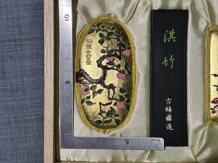 奈良、古梅園製墨販売部ございます。 本日は、金巻き 極上油煙漆墨 紅梅 のご紹介です 最高級油煙墨 金巻き 菜種油を使った最上級の油煙に金箔を貼った墨です。濃墨ですと艶のある純黒で淡墨ですと茶色系の黒です。 販売用URL↓ kmaru10.thebase.in/items/64531140 #古梅園 #墨 #奈良墨 #正倉院展 #Nara pic.x.com/ZQJioB09Rw