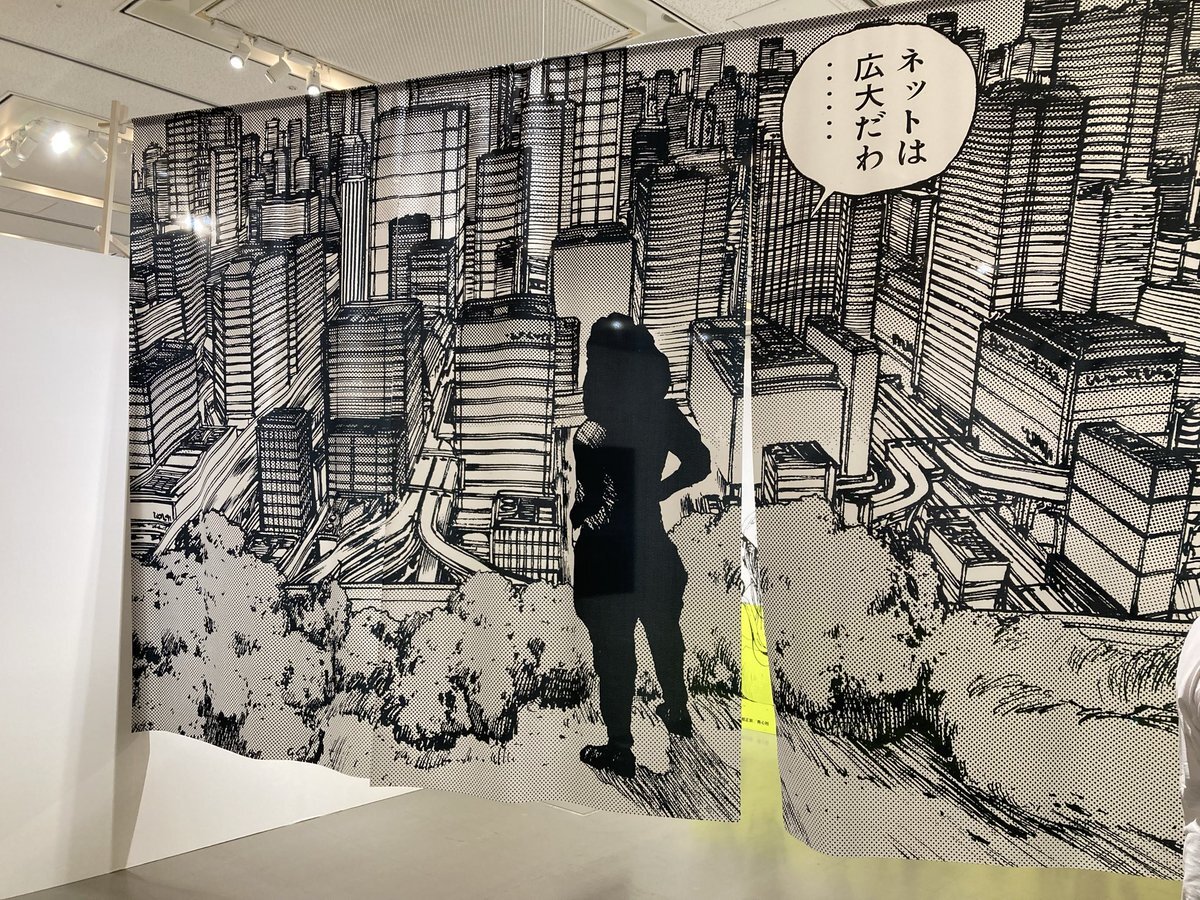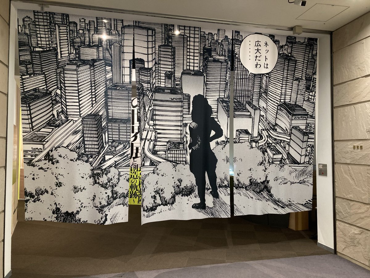 【士郎正宗の世界展】も世田谷から心斎橋と無事(?)会期を終え、そいやこの「ネットは広大だわ暖簾」は処分しちゃったのでしょうかねぇ・・・1名にプレゼント!とかだと盛り上がっただろうに(貰ってどうする #士郎正宗の世界展 pic.x.com/tA9WLUB7KJ